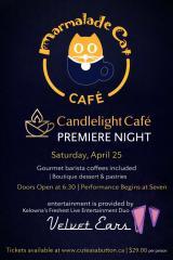 Candle Light Cafe Premier Night hosted at Kelownas Famous Marmalade Cat Cafe. Explore an evening of gourmet barista coffees and the soothing sounds of Kelowna's freshest live entertainment Duo "Velvet Ears"
